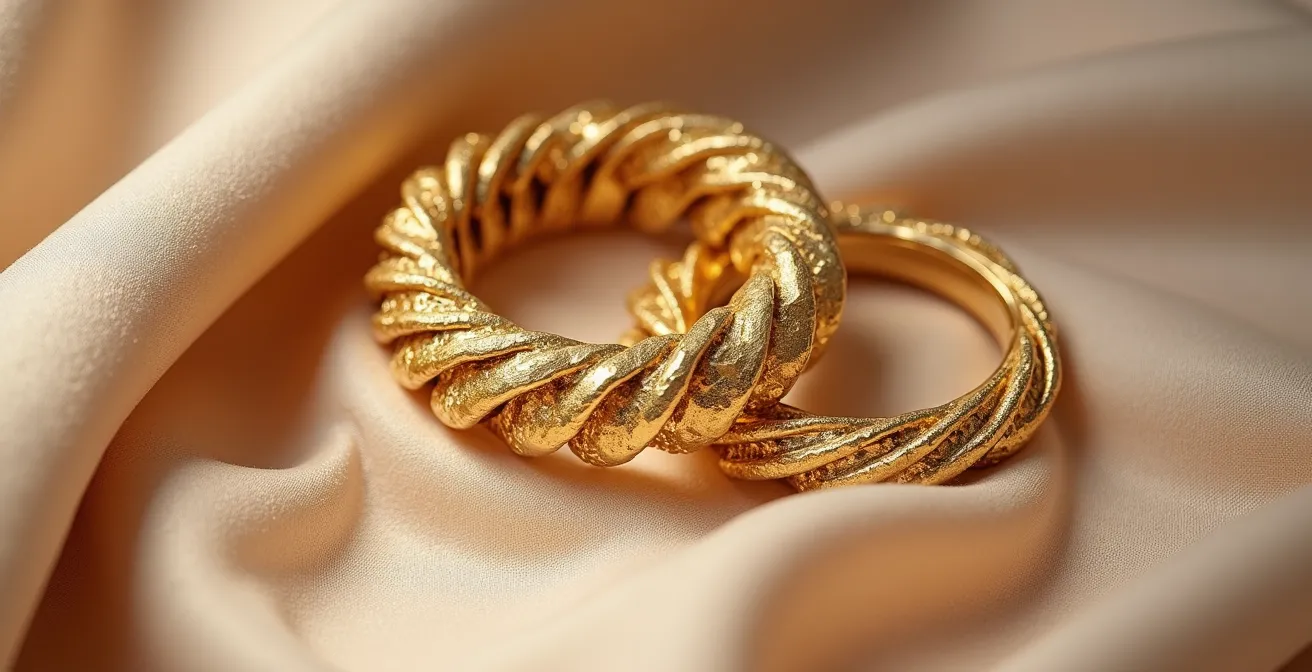 En vous concentrant sur ce jeu de textures, la question de savoir si un bijou est en or véritable ou en plaqué de qualité devient secondaire. L’œil est captivé par la richesse de la composition globale, par le dialogue entre les finitions, et non par la valeur intrinsèque de chaque pièce. C’est le summum du « hacking visuel » : créer une impression de luxe par l’intelligence de l’association.