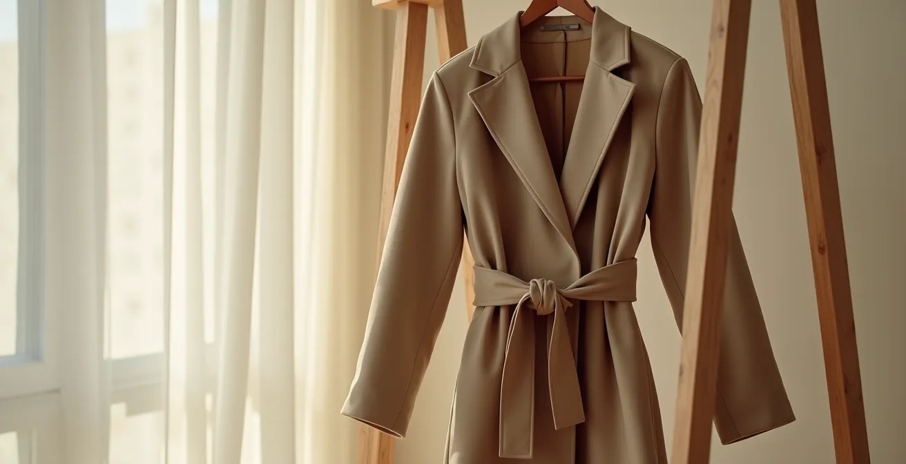 Ceinturer un manteau droit ou une veste ample est un défi. La crainte principale ? L’effet « sac », où le vêtement se fronce de manière peu flatteuse à la taille, ajoutant du volume là où l’on souhaite en enlever. Le secret n’est pas de serrer la ceinture à tout prix, mais de créer un point d’équilibre visuel et de jouer avec le drapé du tissu. L’objectif est de sculpter la silhouette, de suggérer une taille plutôt que de la comprimer.