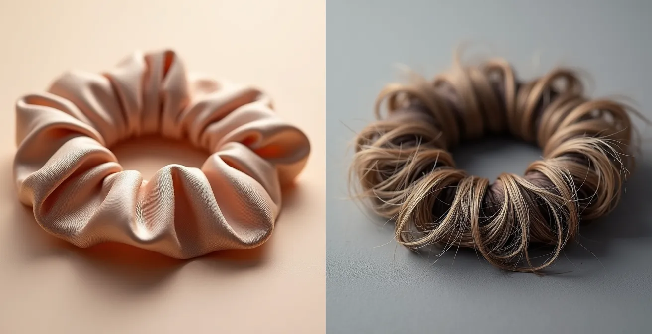 Contrairement à un élastique fin qui concentre toute la tension sur une petite surface, le chouchou en soie répartit la pression sur une zone plus large. Cela permet de maintenir le chignon fermement, mais sans créer de point de rupture. Le résultat est une coiffure qui tient, sans la marque disgracieuse et les cheveux cassés que l’on découvre en fin de journée. Passer à la soie n’est pas un luxe, c’est un choix mécanique pour la santé à long terme de vos cheveux.