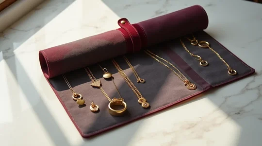 Pour la discrétion et la sécurité, évitez les écrins luxueux qui signalent leur contenu précieux. Préférez des pochettes discrètes que vous garderez dans votre bagage cabine plutôt qu’en soute. Photographiez vos pièces de valeur avant le départ : cette documentation facilite les démarches en cas de vol et peut être utile lors de la préparation douanière si vous voyagez avec des bijoux de grande valeur.